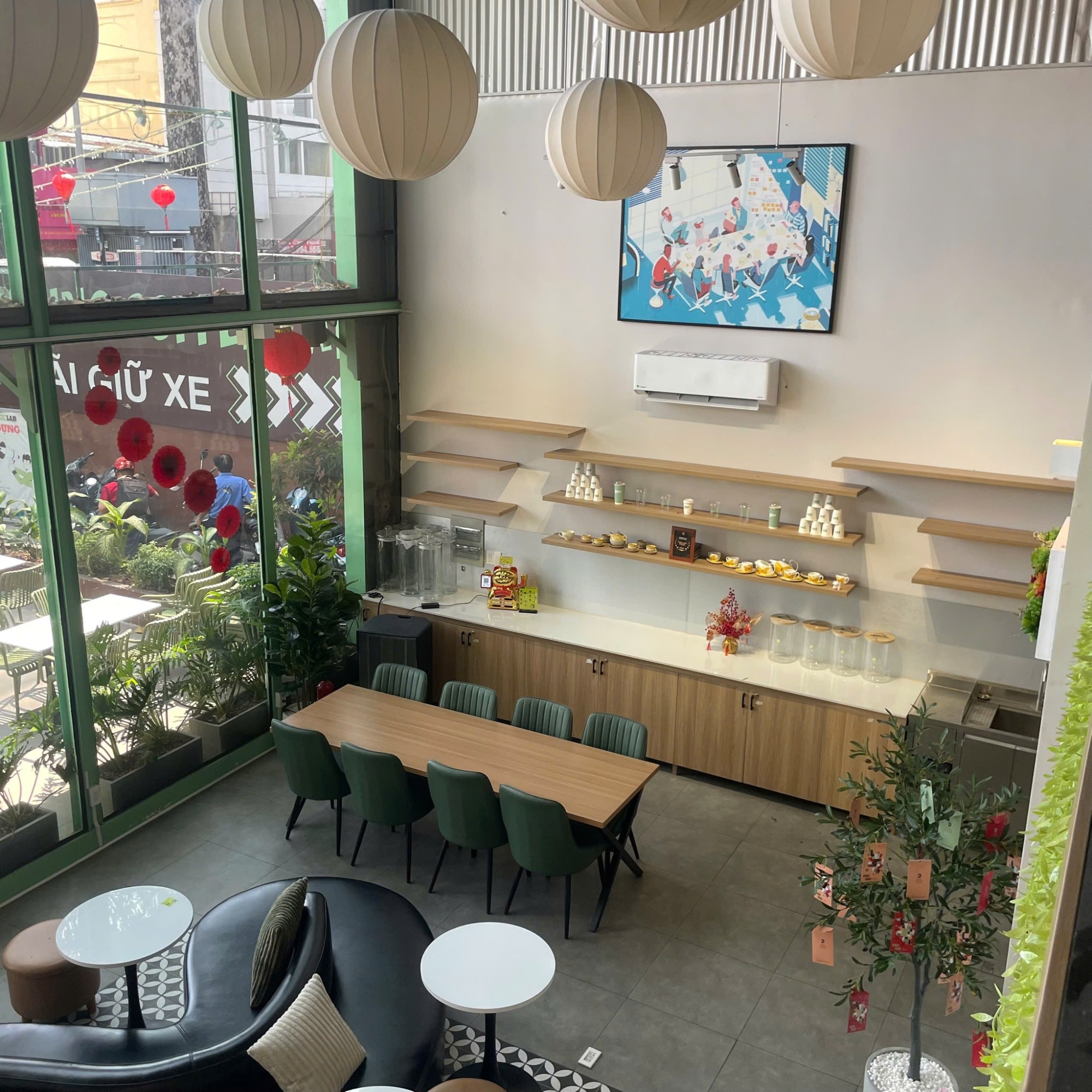 Không gian: Quán được thiết kế hiện đại và thoáng đãng, tạo cảm giác thoải mái cho khách hàng. Đây là nơi lý tưởng cho việc làm việc, họp nhóm và thư giãn với bạn bè.